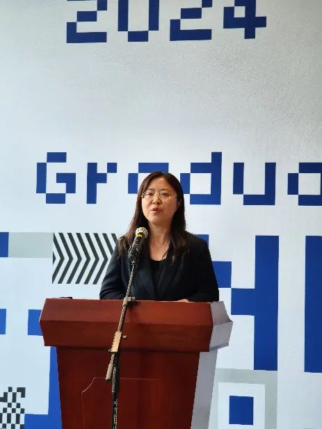 艺术设计学院院长邹锋致辞,强调艺术设计作为连接科技与人文的桥梁,在推动社会进步和文化发展中发挥着不可替代的作用。毕业设计是研究生阶段的重要一环,它不仅是对学生们学术水平和创新能力的全面检验,更是向社会展示自己的舞台。邹院长点评了本次参展作品所展现出的多样性和创新性,祝愿2024届全体毕业生在人生的新旅程中取得更加辉煌的成就。