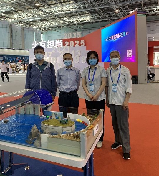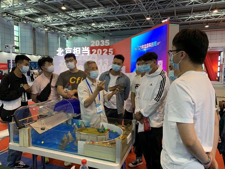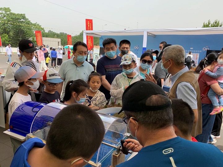 普及科学知识,促进科技创新和科学普及协同发展,我校微特电机科技博物馆参展的互动展项是“让海水有序流动装置”。填海建造人工岛屿成为解决沿海土地资源贫乏的重要途径,然而人工岛屿直接影响到附近海域的海水流动性,造成赤潮等污染。该装置模拟海湾内海水流动情况,通过造浪装置制造海浪,在导流模块的作用下使海水有序流动,让‘死’水‘活’起来,解决相关的污染问题,传播环保意识。该展品通过创新、新颖和趣味的科普互动成果展示,吸引众多参观者、家长和孩子驻足观看和体验。