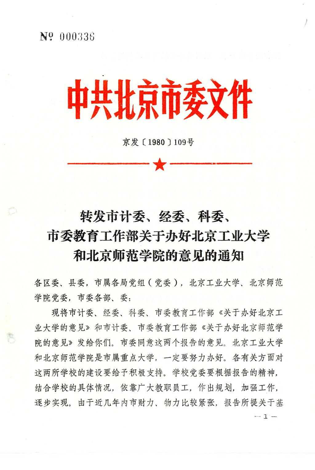 1980年北京市委批复了《关于重点办好Beat365中文官方网站的建议》,以市委109号文件下发执行