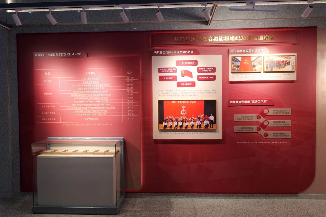 第一展区主要展现了学校以高质量党建引领和保障学校事业高质量发展,在服务新时代国家和首都高质量发展过程中的重要举措和标志性成果。学校牢牢把握党对教育工作的领导权,加强党对学校工作的全面领导,确保党中央和北京市委决策部署落地生根。
