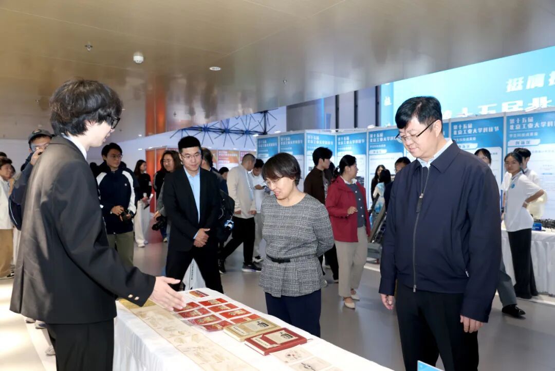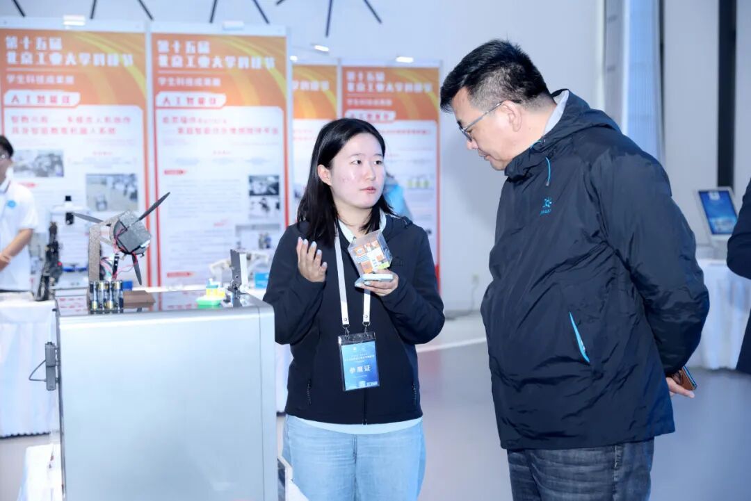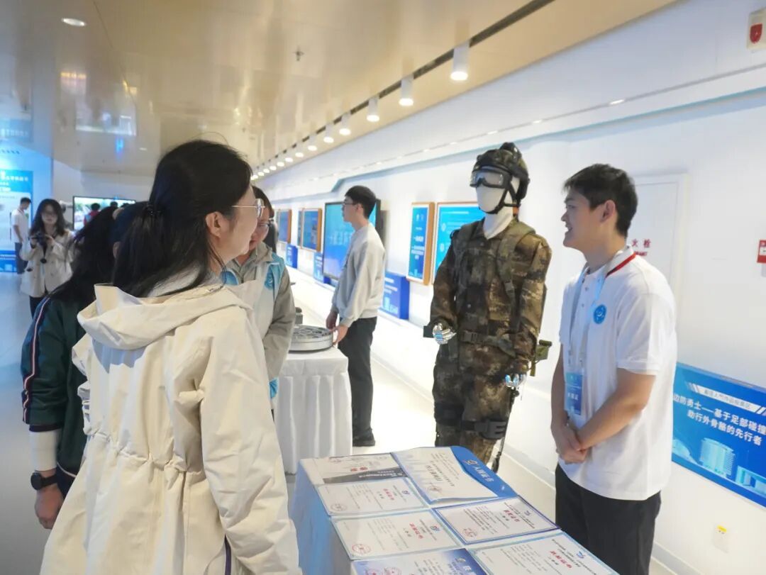 启动仪式后,现场领导、嘉宾与师生共同走进科技馆观看优秀学生科技成果路演与展览。物理与光电工程学院学生闫炜楠、机械与能源工程学院学生范佳乐带来《多维度数据融合的主动脉瓣智能决策系统》《打造未来高精制造的利器——超快飞秒光纤激光器》项目路演。此外,各展区项目代表也纷纷登场,生动讲解了各自项目的核心成果与创新思路。