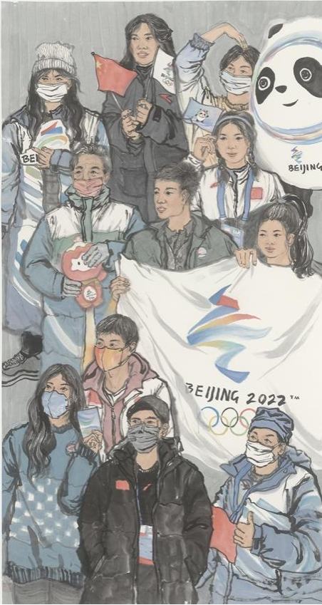 2022年如约举办的冬季奥运会,可以视作是中国文化与奥林匹克再相约。北京市宣传文化高层次人才培养资助项目——《“圆梦双奥”---北京冬奥会主题中国画系列创作实践研究》深入领会新时代创作精神,立足北京作为双奥之城的唯一性荣耀身份,以北工大市属高校的主人翁姿态,为奥运盛会进行系列主题性创作,将人文情怀与体育精神融汇于当代中国文明开放包容的新风貌中。