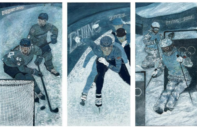 古今融通,交相辉映,传统文化的时代创新仍需在不断创作实践中摸索。冬奥题材的艺术创作,绝不仅仅是将冰雪自然景观与冰雪运动形象简单地组合或叠加,而是需要在深入理解奥林匹克精神的基础上,实现力与美“一加一大于二”的融合,是视觉上的绽放,也是精神上的升华。实验研究中丰富绘画语言与形式表现手段;对推动学科建设,培养优秀创作人才具有重要价值。同时广泛传播和普及中国连续举办夏季奥运会与冬季奥运会的内在深刻含义,推动艺术表现与体育运动的双驱动发展。用鲜活的形象带动全世界了解中国奥林匹克精神,使传统文化得以传承的同时能够与时俱进地完美承载了北京冬奥会的愿景和中国的文化底蕴。