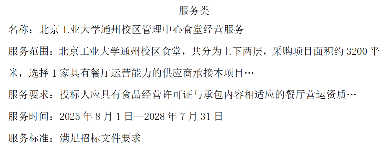 二、项目名称:(校拨)通州校区管理中心后勤保障费-通州校区食堂餐饮服务