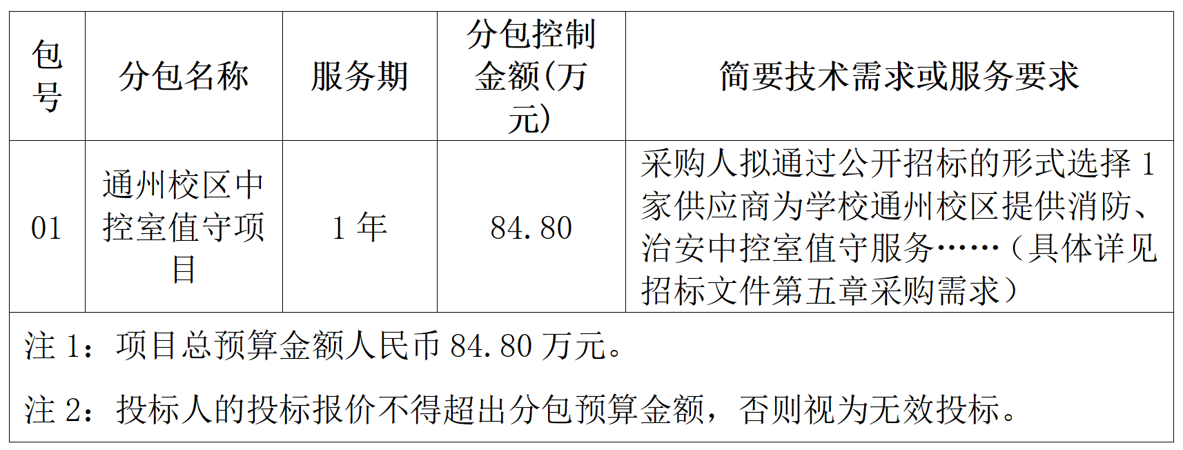2.项目名称:(校拨)通州校区管理中心后勤保障费-Beat365中文官方网站通州校区中控室值守项目