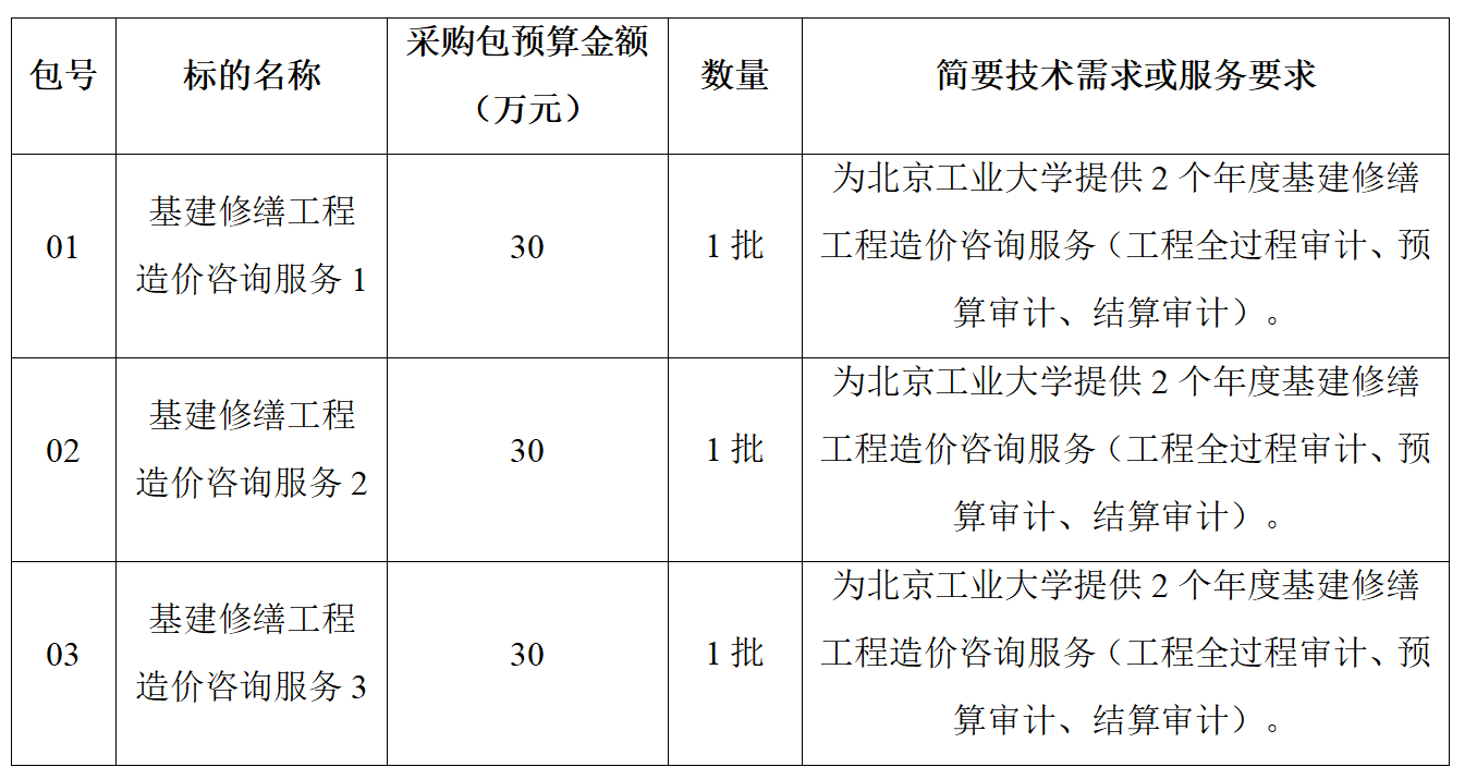 2.项目名称:基建修缮工程审计造价咨询服务