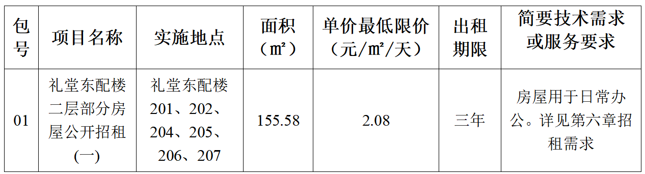 2.项目名称:礼堂东配楼二层部分房屋公开招租(一)