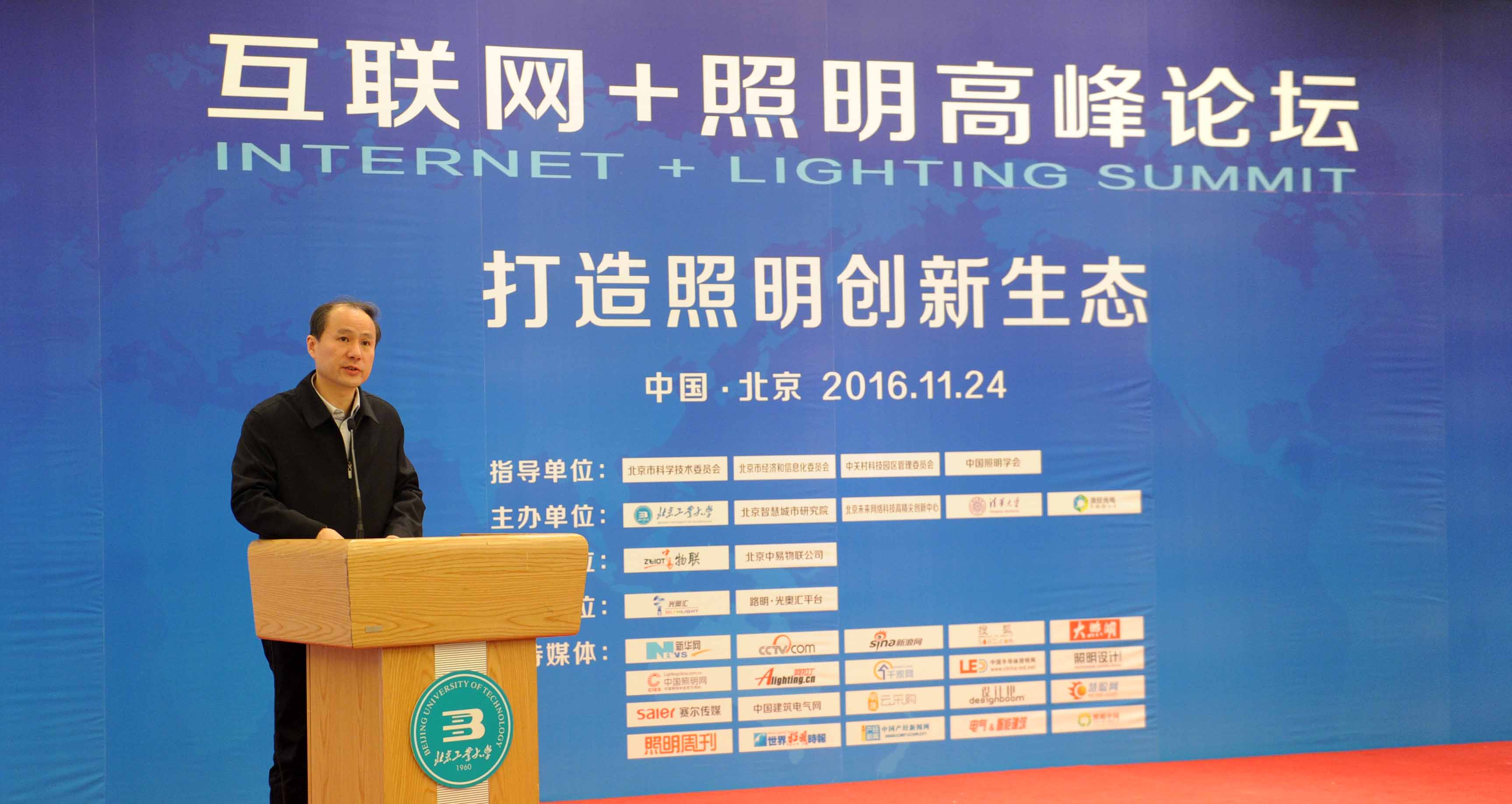 北京市经信委副处长刘旭,北京大学智慧城市研究中心主任李琦,Beat365中文官方网站智慧城市研究院常务副院长林绍福、建筑与城市规划学院李农教授以及行业知名企业代表进行了精彩的主题演讲。围绕创新、应用、技术、趋势、案例展开讨论,旨在新型智慧城市建设的框架下促进智慧照明行业在产品、平台、服务上进行创新生态建设,促进照明行业提质增效、节能减排、转型升级发展,搭建互联网+照明建设领域的政产学研用合作平台。