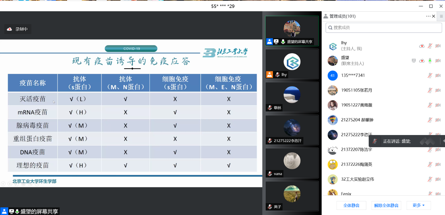 本期讲座吸引了百位学校师生在线参与,并取得了一致好评。参会人员纷纷表示盛望教授的讲座精彩生动,知识面广,专业性强,对师生如何预防新冠病毒有着极好的指导作用。科技抗疫组下一期讲座将聚焦疫情防控下的师生心理健康,希望通过系列讲座可以为在校师生解决实际问题,并让广大师生感受到北工大人的科技创新活力,和不畏艰难、积极探索,用科学的力量服务社会的科学家精神!