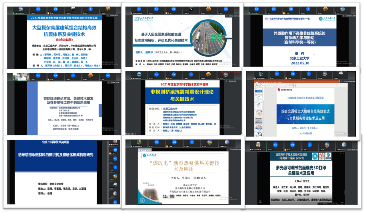 会上分别由曹万林、赵晓华、张伟、刘占省、韩强、胡永利、岳明、马国远以及毋立芳共9位申报人分别围绕背景与思路、主要创新点、国内外同类比较、知识产权、推广应用等方面进行了讲述。评审专家们认真听了项目的线上汇报,每一位申报人汇报完毕后,都针对项目特点进行了深入交流,对如何进一步完善答辩材料提出了宝贵的建议。